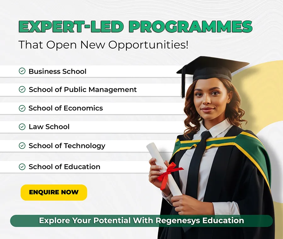 Regenesys Business School prepares students to tackle the multifaceted challenges inherent in various business aspects, shaping them into adept and responsible leaders poised to shape the future of management and business administration.